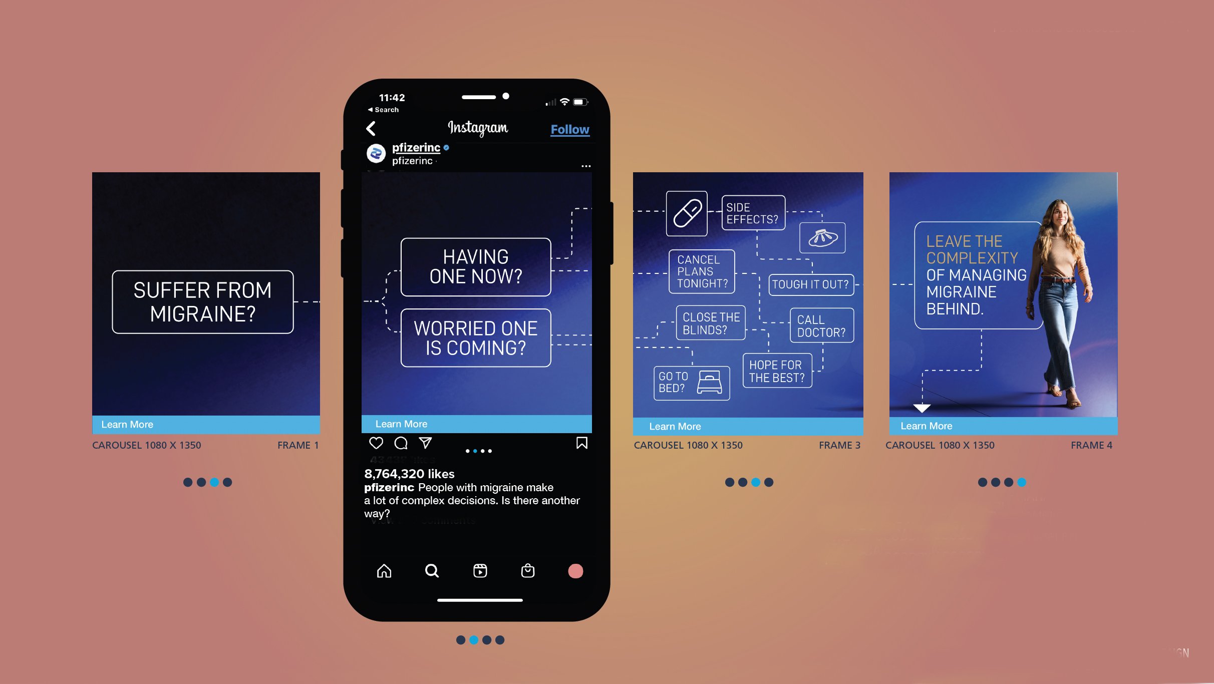 We were tasked with creating an Unbranded campaign for Pfizer’s blockbuster migraine drug NURTEC (called VYDURA outside of the US), that would set the stage for a Branded campaign to launch globally.
